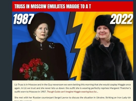 Министра иностранных дел Великобритании Элизабет Трасс ее же соотечественники обвинили  в попытке стать Маргарет Тэтчер во время визита в Москву.  Англичане заметили демонстративный образ Трасс во время визита в Россию.