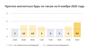 Прогноз магнитных бурь по часам на 8 ноября 2025 года. Инфографика