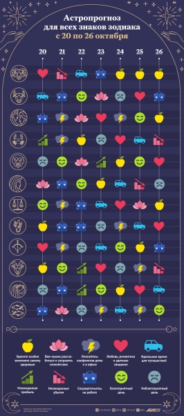 Астрологический прогноз с 20 по 26 октября 2025 года. Инфографика