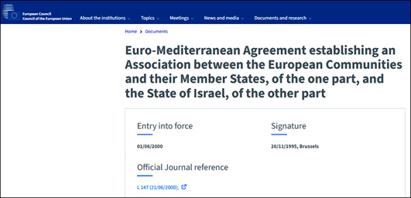 Соглашение об Ассоциации ЕС и Израиля. Скриншот страницы сайта consilium.europa.eu