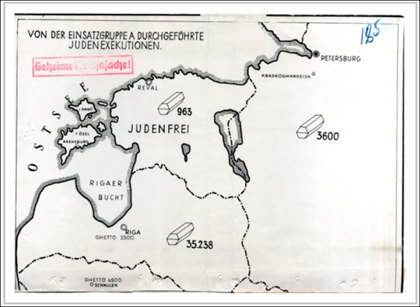 Немецкая карта истребления евреев на оккупированной территории СССР. Эстония обозначена как «свободная от евреев». Скриншот страницы сайта ramtograf.ru