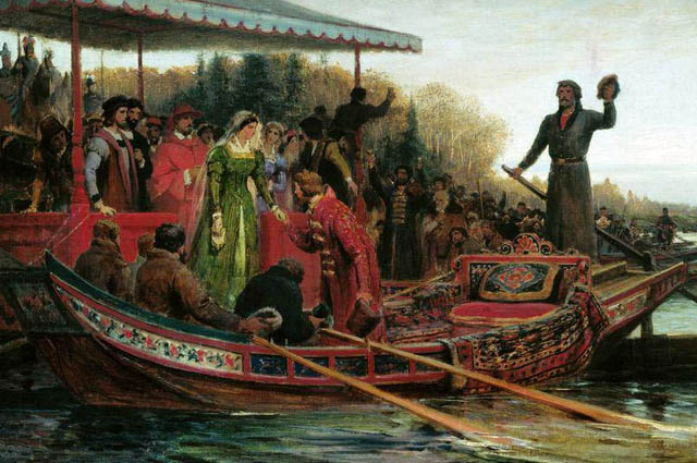 Фёдор Бронников. «Встреча царевны Софии Палеолог псковскими посадниками и боярами в устье Эмбаха на Чудском озере» Фото: Commons.wikimedia.org