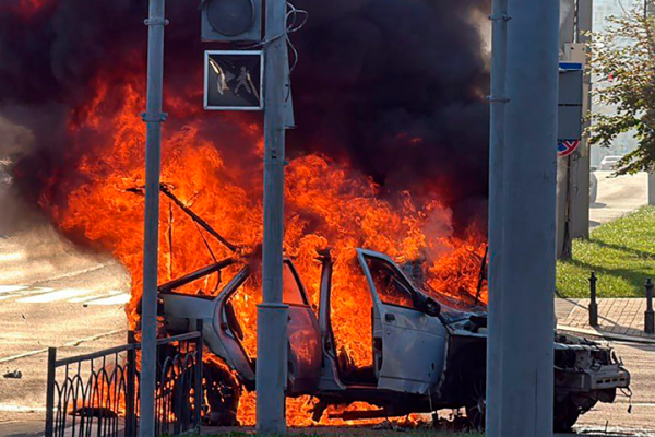 Автомобиль, уничтоженный дроном в Белгороде. Фото: тг-канал «Настоящий Гладков»