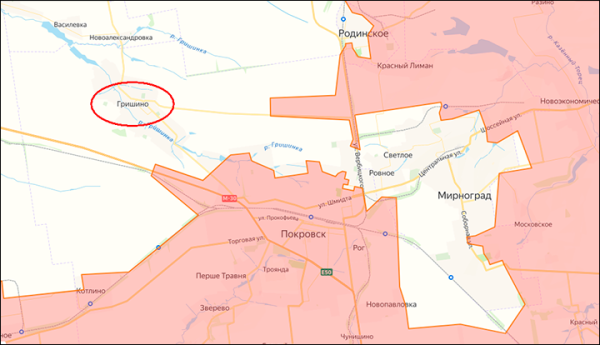 В последние пару дней фиксируется продвижение наших штурмовиков в окрестностях Гришино – села, расположенного к западу от Покровска, на исключительно важной дорожной развязке. Ещё две недели назад именно в этом селе украинское командование накапливало силы для деблокирующего удара, то есть оно было хоть и ближним, но тылом. Теперь же русская пехота пробует его на зуб. Это значит, что противник не только выбит с северной окраины Покровска, но и потерял поля между городом и селом.