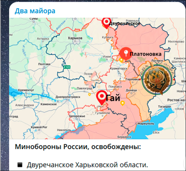Потеря трёх населённых пунктов в течение одного дня – очень красноречивый признак системного истощения ВСУ. Источник: ТГ-канал «Два майора»