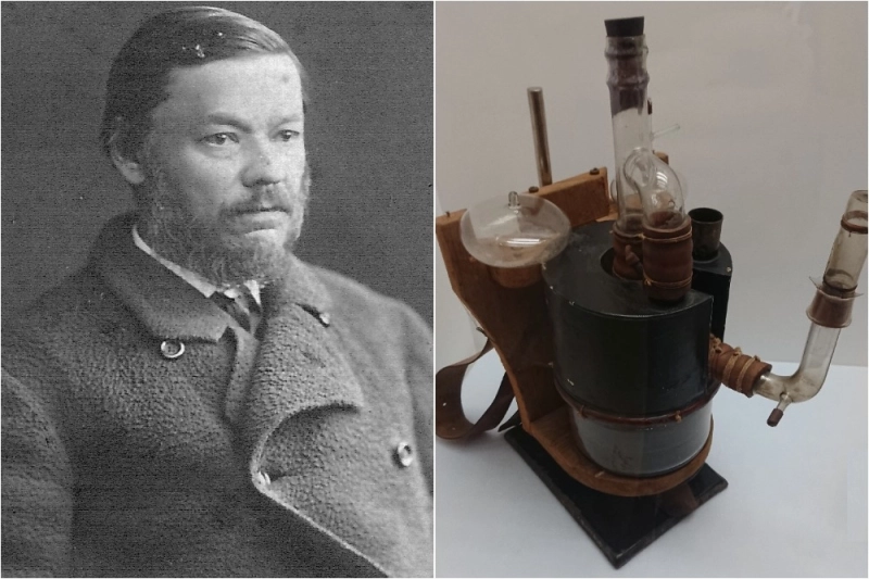 Иван Михайлович Сеченов — русский учёный-медик, физиолог и психолог, академик Императорской академии наук; Портативный газоанализатор его конструкции, 1890-е г. Фото: Коллаж АиФ