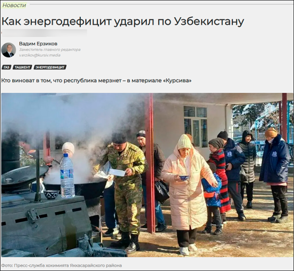 Энергокризис в Узбекистане: люди мёрзли и голодали. Россия спасла. Скриншот с сайта uz.kursiv.media