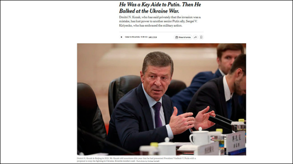 Дмитрий Козак, отец Минских соглашений, больше не куратор ближнего зарубежья. Статья The New York Times о Дмитрии Козаке. Источник: NYT