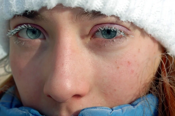 В Оймяконе ресницы мгновенно покрываются инеем. Фото: Царьград/Олег Рукавицын
