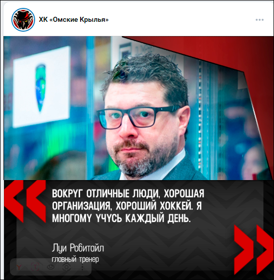 летом к «Омским Крыльям» присоединился Луи Робитайл. Специалист, прилетевший в Москву с супругой в июне, был покорён столицей с первых дней. Скриншот VK