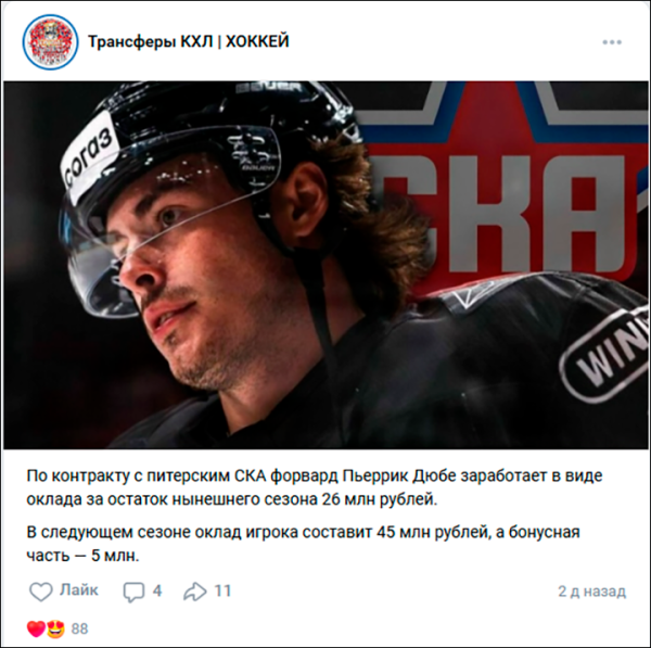 Двукратный обладатель Кубка Гагарина в составе ЦСКА Даррен Дитц. Скриншот VK