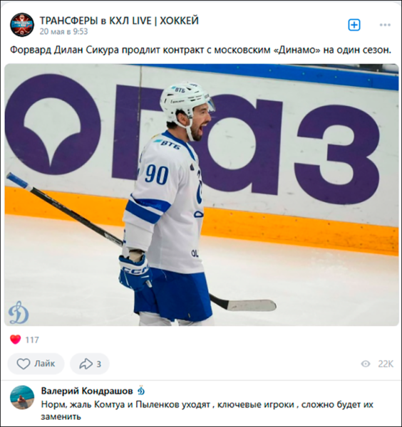 Нападающий канадец Дилан Сикура признаётся, что покорён столицей России с первых дней. Скриншот «Трансферы в КХЛ LIVE/Хоккей»