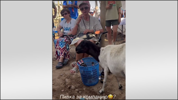 Хакамада отдыхает в хорошей компании и убеждает подписчиков, что она «тоже коза». Скриншот: ТГ-канал@goodphrase