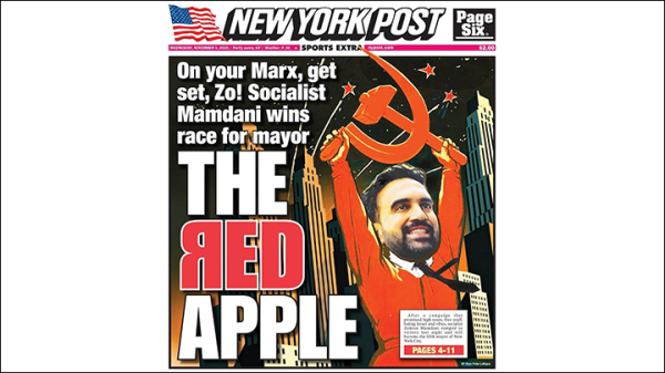Так отреагировало издание New York Post на избрание Мамдани мэром Нью-Йорка. Скриншот: NYP