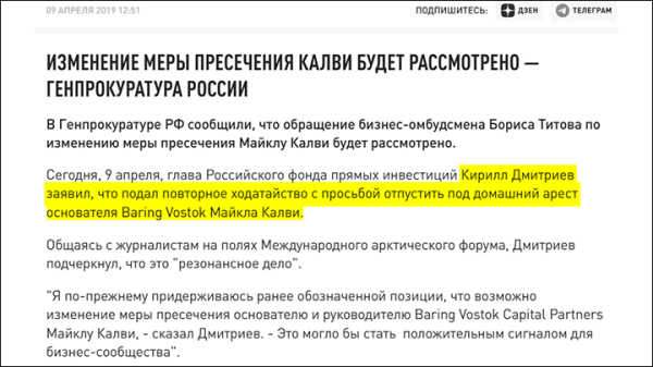 В 2011 году Дмитриев возглавил РФПИ. На этом посту он отметился деятельной работой по привлечению в нашу страну западных инвестиций. Кстати, любопытная деталь: Дмитриев активно защищал американского инвестора Майкла Калви, задержанного в 2019-м по обвинению в мошенничестве (нашумевшее дело Baring Vostok).