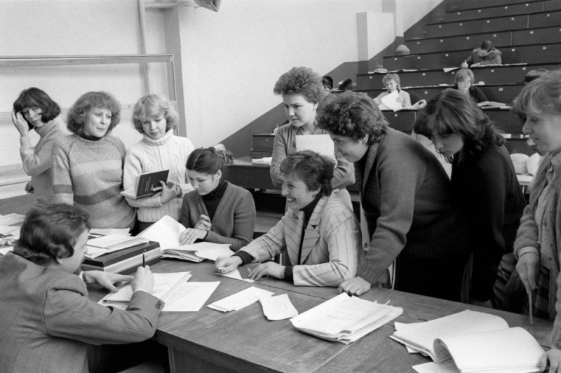 Студенты Московского гидромелиоративного института (ныне Институт мелиорации, водного хозяйства и строительства имени А. Н. Костякова РГАУ-МСХА имени К. А. Тимирязева) во время сдачи зачетов. 1985 г. Фото: РИА Новости