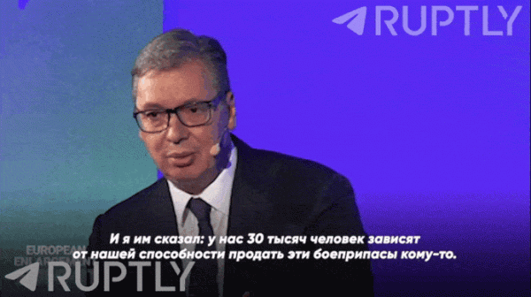 Вучич о том, что Сербия готова продавать снаряды кому угодно – хотя и надеется, что они не окажутся на Украине. Видео: Ruptly