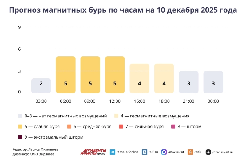 Почасовой прогноз магнитных бурь по московскому времени смотрите в инфографике aif.ru.