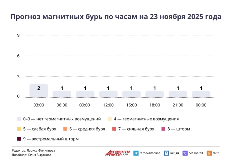 Домой Россия Прогноз магнитных бурь по часам на 23 ноября 2025 года. Инфографика