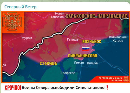 13 ноября бойцы группировки «Север» также опубликовали срочную новость, сообщив об освобождении Синельниково рядом с Волчанском (который, по ряду сообщений, также под полным нашим контролем). Населённый пункт являлся  одним из ключевых узлов обороны противника на Волчанском направлении. К сожалению, в 2022 году мы были вынуждены оставить часть Харьковской области, однако мы наконец возвращаем эти границы и постепенно создаём новые.