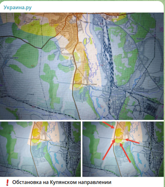 Клин, вбитый в оборону ВСУ в районе южных окраин Купянска — Садового (у переправы западнее пос. Силикатчиков), противник пытается контратаковать, чтобы срезать его и восстановить полный контроль над переправой. Очередная попытка провалилась. Наши подразделения отбили несколько контратак одновременно с трёх направлений (с запада — со стороны Благодатовки с господствующих высот, с юга — со стороны Осинова, с востока — со стороны пос. Силикатчиков, Купянска-Узлового — через переправу.