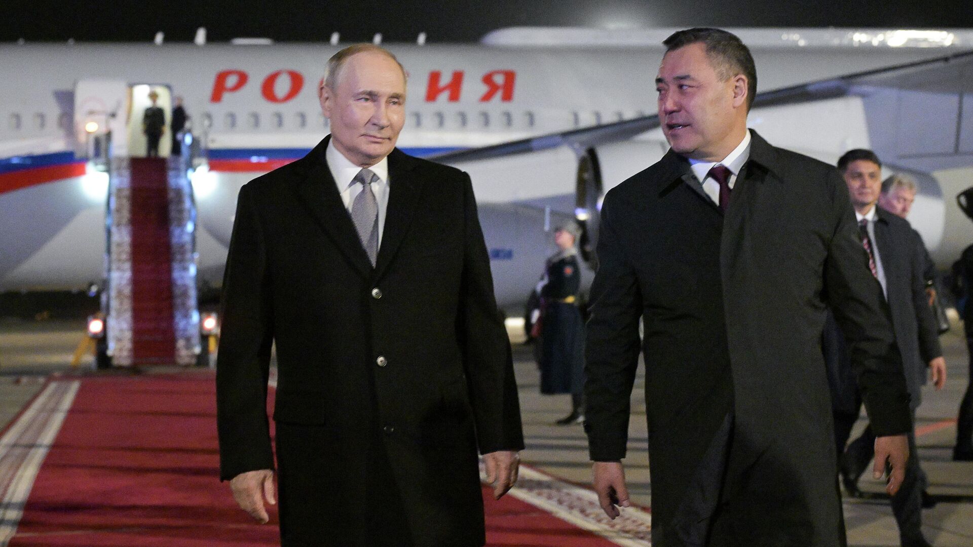 По прилете в Бишкек Путин вместе с президентом Киргизии Садыром Жапаровым принял участие в церемонии возложения венков к Вечному огню на площади Победы. Вечер вторника лидеры двух стран провели за неформальным общением в формате тет-а-тет.