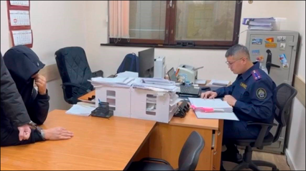 С подозреваемым (в кадре слева) проводят следственные действия. Скриншот: официальный сайт Следственного комитета по Московской области (mosobl.sledcom.ru)