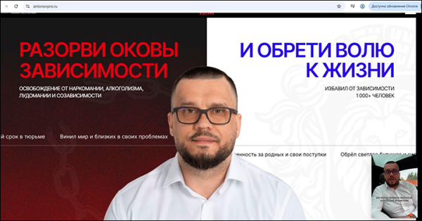Максим Антонов на заглавной странице сайта своего рехаба. Скриншот: интернет-сайт antonovpro.ru