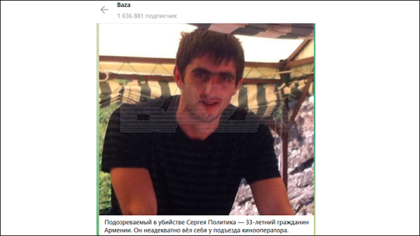Следователи уже установили личность нападавшего — 33-летний гражданин Армении Армен С. Скриншот с ТГ-канала Baza