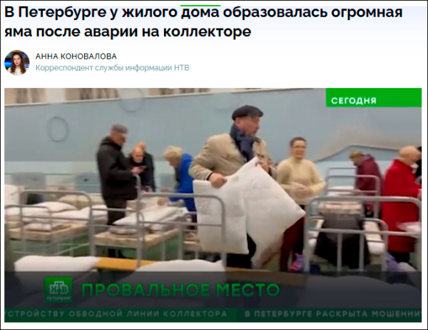 Эвакуированные жители размещаются на ночлег в школе, сайт телекомпании «НТВ», скриншот экрана