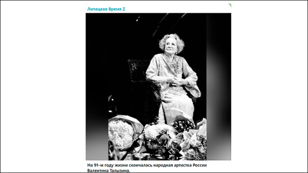 Валентина Талызина жила сценой. И продолжала работать до конца. Скриншот ТГ-канала «Липецкое время Z»