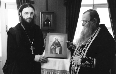 Я с интересом почитал поздравления ей отца Иоанна. Это меня вдохновило и самому познакомиться с ним. Я узнал у Марии его телефон, позвонил и пригласил посетить Мемориальную Квартиру о. Иоанна Кронштадтского, которая тогда только восстанавливалась. Тогда, в начале нулевых, была открыта только одна мемориальная комната – гостиная. Он неожиданно радостно согласился, назвал число и приехал в Кронштадт со своей матушкой, став одним из первых её посетителей. Я рассказал о том, как мы открывали квартиру, какие удалось собрать святыни. Отец Иоанн послужил молебен Иоанну Кронштадтскому. На память подарил старцу зелёную епитрахиль. Потом мы пили чай, за которым о.Иоанн поделился своими благодатными воспоминаниями о встречах с великими подвижниками прп.Серафимом Вырицким, прп.Кукшей Одесским, прп.Симеоном Псково-Печерским. О.Иоанн благодарил Господа, что Тот сподобил его увидеть подвижников, прославленных уже при его жизни Церковью в лике святых. Рассказал он и о 17 приходах, которые он вынужденно менял за своё служение. Одним из них и было Сомино.