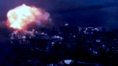 Прилёты ФАБов в Мирнограде. Видео с канала «Сводки ополчения Новороссии Z.O.V.»