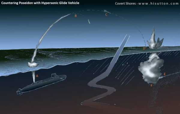 Нетривиальная схема с подключением атомной подводной лодки и гиперзвуковой ракеты, доставляющей в точку перехвата ядерный заряд. Источник: hisutton.com