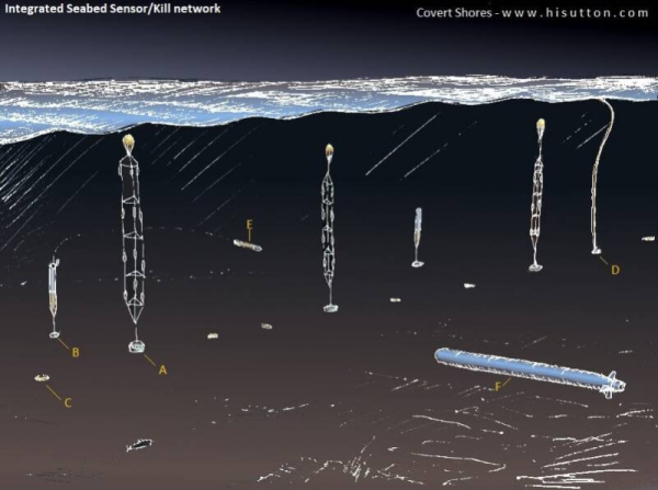 Вариант адаптации SOSUS под борьбу с «Посейдонами». Имеющиеся у американцев торпеды медленнее русского дрона, поэтому должны атаковать его на встречных курсах. Источник: hisutton.com