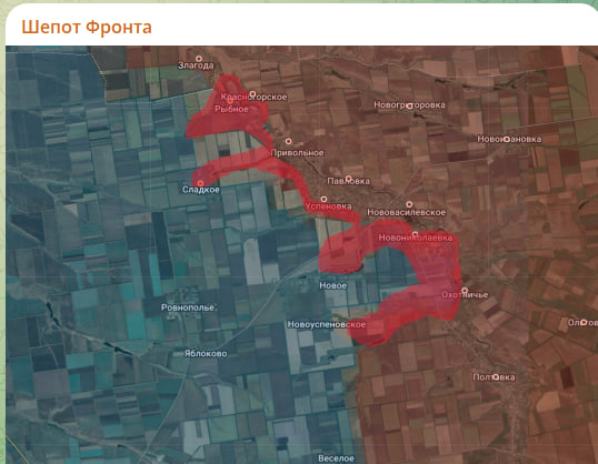 Военкор Руслан Татаринов, автор канала «Шёпот фронта», сообщил, что вместе с Рыбным взяты Сладкое и Успеновка: