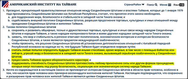 Фрагмент договора между США и Тайванем 1979 года. Скриншот страницы сайта ait.org.tw. Автоперевод