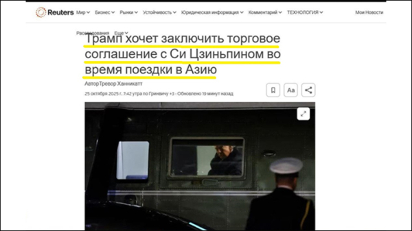 Он посредник между Таиландом и Камбоджей, ему должны «присягнуть» союзники по Юго-Восточной Азии, а Си Трамп рассчитывает «продавить» с помощью тарифного шантажа. Ну, и немного личного обаяния…