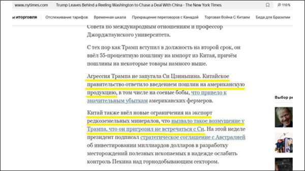 Если Трамп думал, что Китай не умеет играть в санкции и тарифы, то он ошибался… Скриншот: интернет-сайт nytimes.com (автоперевод)