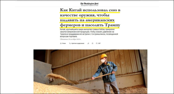 Ситуация с поставками сои раскрывает нынешний геополитический расклад сил.