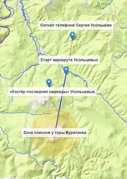 Карта поисков семьи Усольцевых. Источник: соцсети