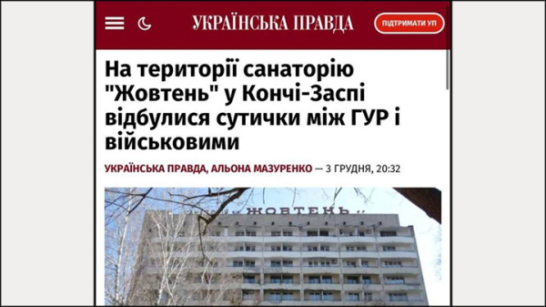 На территории санатория «Октябрь» в Конча-Заспе произошли столкновения между ГУР и военными. Скриншот: «Украинская Правда»