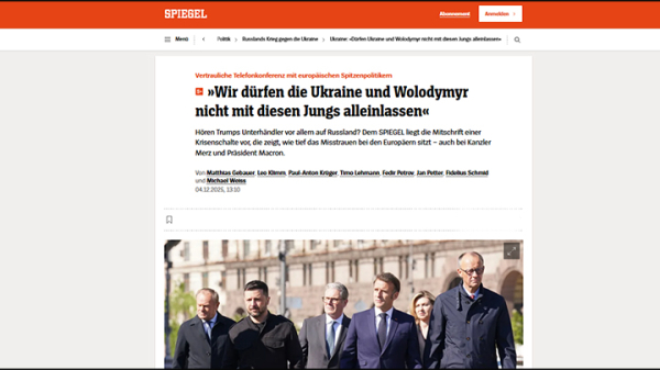 Эммануэль Макрон заявил о вероятности того, что «США предадут Украину в территориальном вопросе без ясности в отношении гарантий безопасности» и что Зеленскому лично грозит «большая опасность». Хотя и Елисейский дворец, и лично президент Франции «опровергли» эти слова, они были сказаны, иначе немецкий журнал никогда бы не решился это опубликовать. Как и привести слова своего канцлера Фридриха Мерца, посоветовавшего Зеленскому быть «крайне осторожным в ближайшие дни», поскольку американцы «играют в игры как с вами, так и с нами».