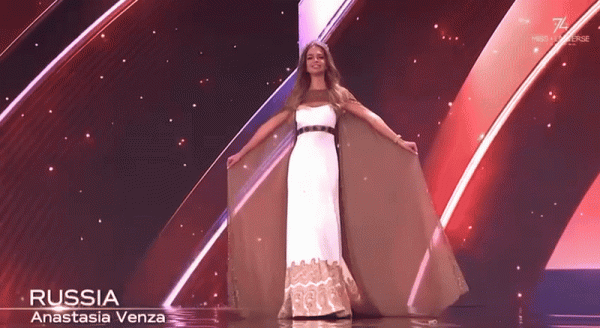 Костюм русской участницы посчитали слишком простым. GIF :видео с ТГ-канала «Звёздная пыль»